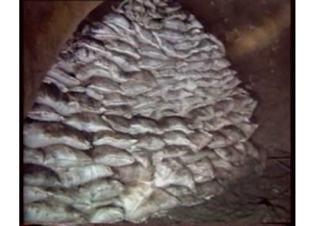 按推薦比例配成的混合料在800-1000℃高溫下,15-20分鐘內(nèi)不會被引燃形成明火,且不會產(chǎn)生有毒有害氣體,并有極強(qiáng)的隔熱功效。按比例將干碎煤矸與FSA料干混均勻后,用噴霧加水或噴水的方式使其形成均勻有粘彈性的混合料再裝袋壘砌成墻,此粘彈性的混合料一直呈濕潤保水狀態(tài),阻燃隔熱能力強(qiáng)。每個袋中20kg碎煤(或矸石與碎煤混合)+2-3kgFSA料+10-15kg水;封堵溜煤眼、小井時不裝袋效果更好。