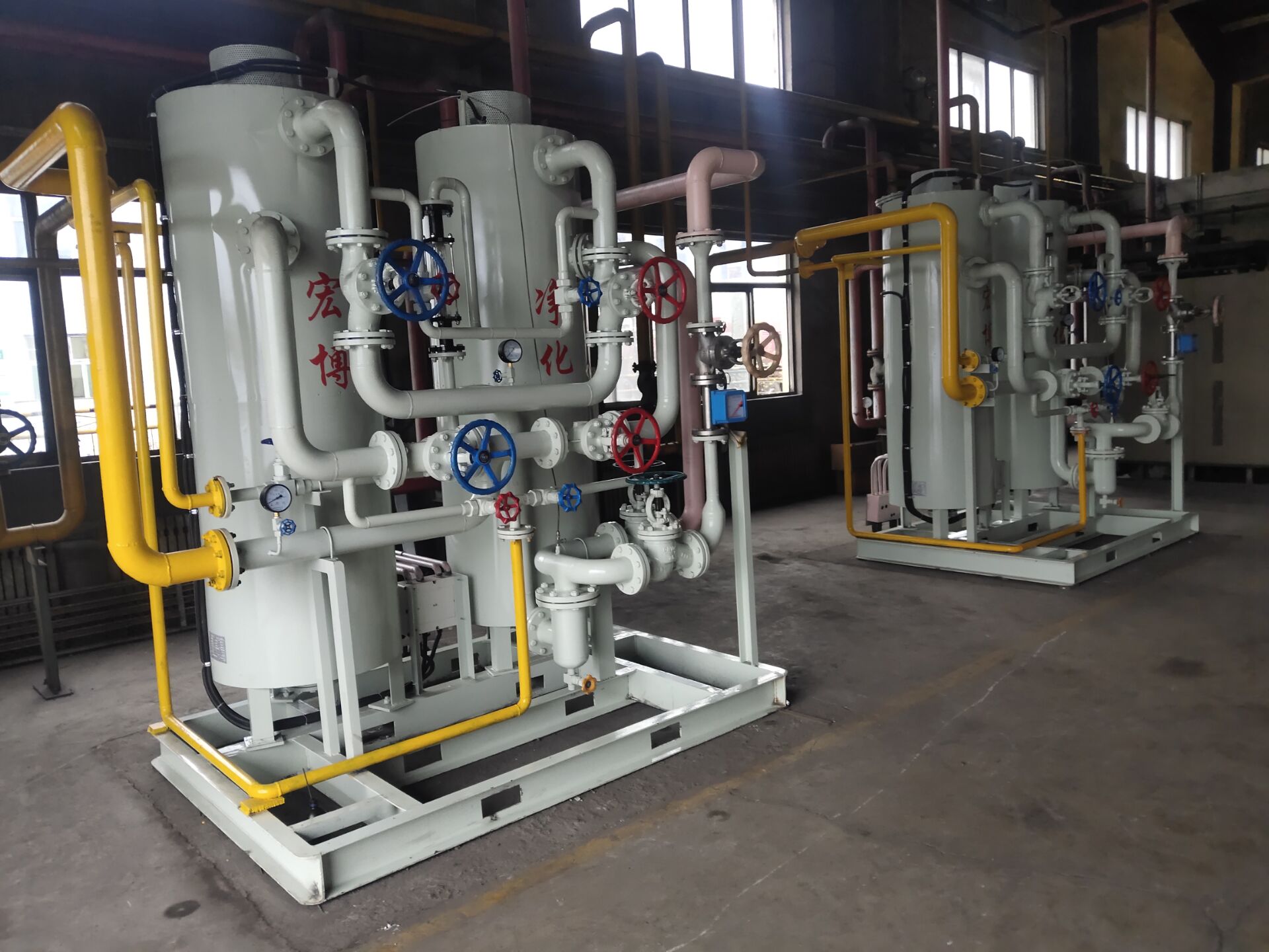 如需純度更高的氣體,氨分解出來的氣體再進入純化裝置除水、除氧,純化裝置中兩個干燥器交換使用,連續(xù)供氣,最后經(jīng)過濾器,流量顯示送到客戶使用點。